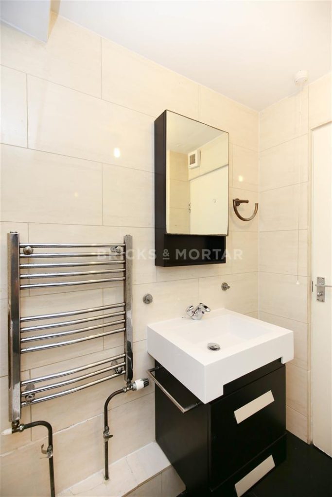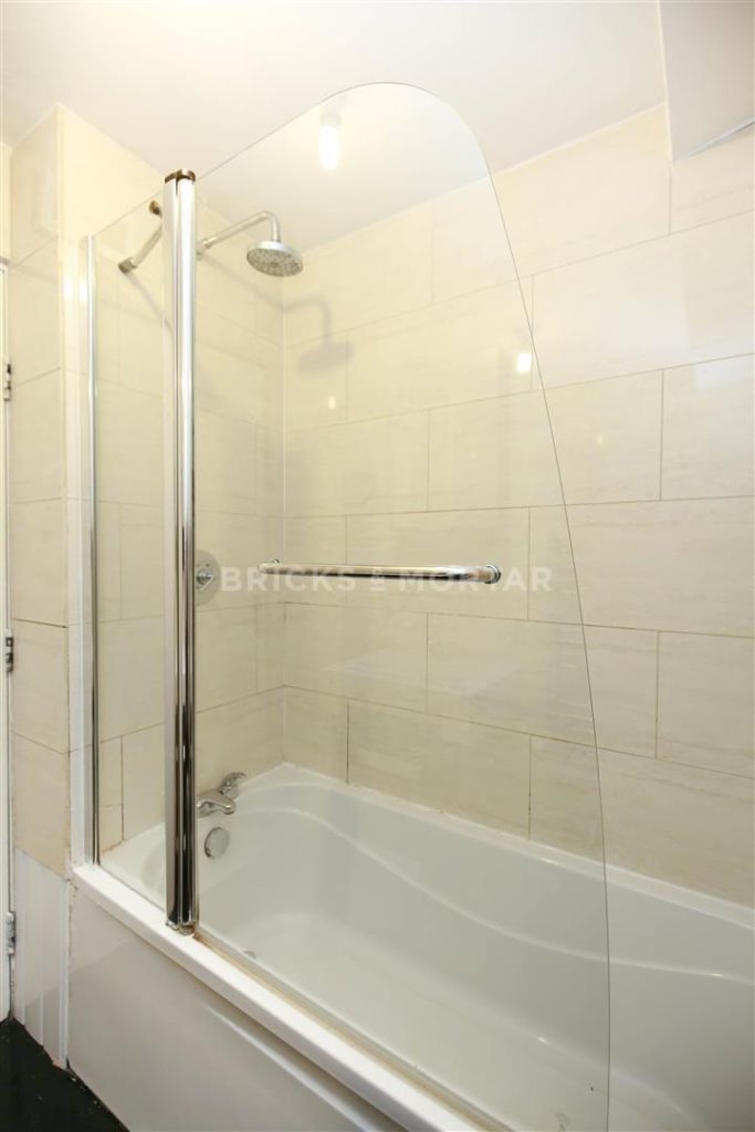 The property features a contemporary tiled bathroom suite with a bath and overhead power shower.