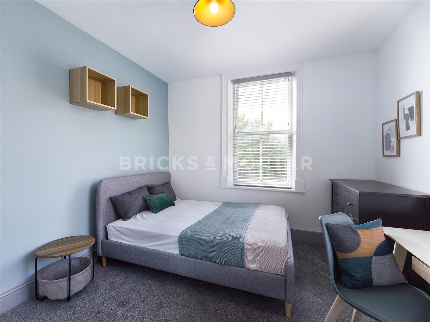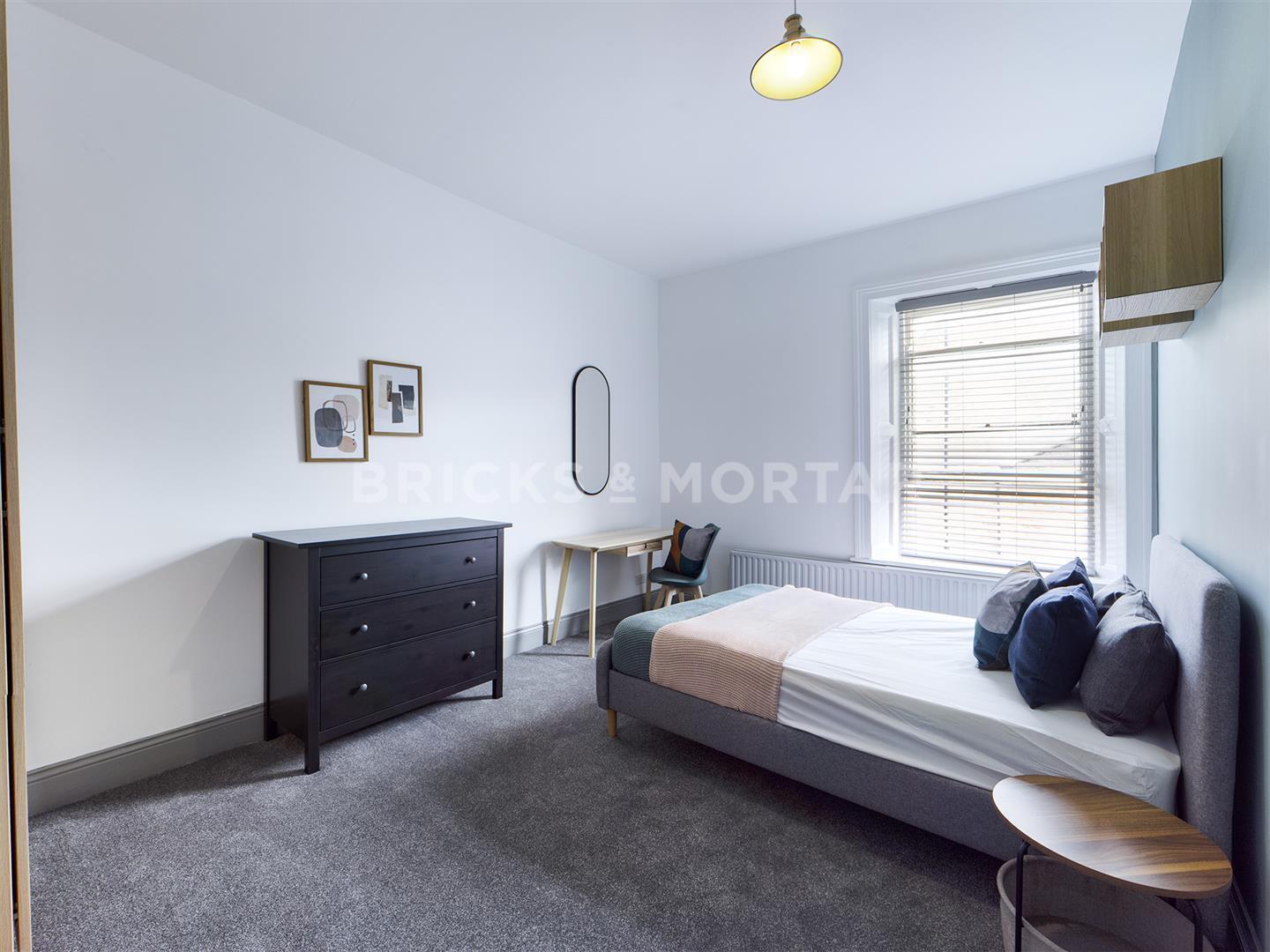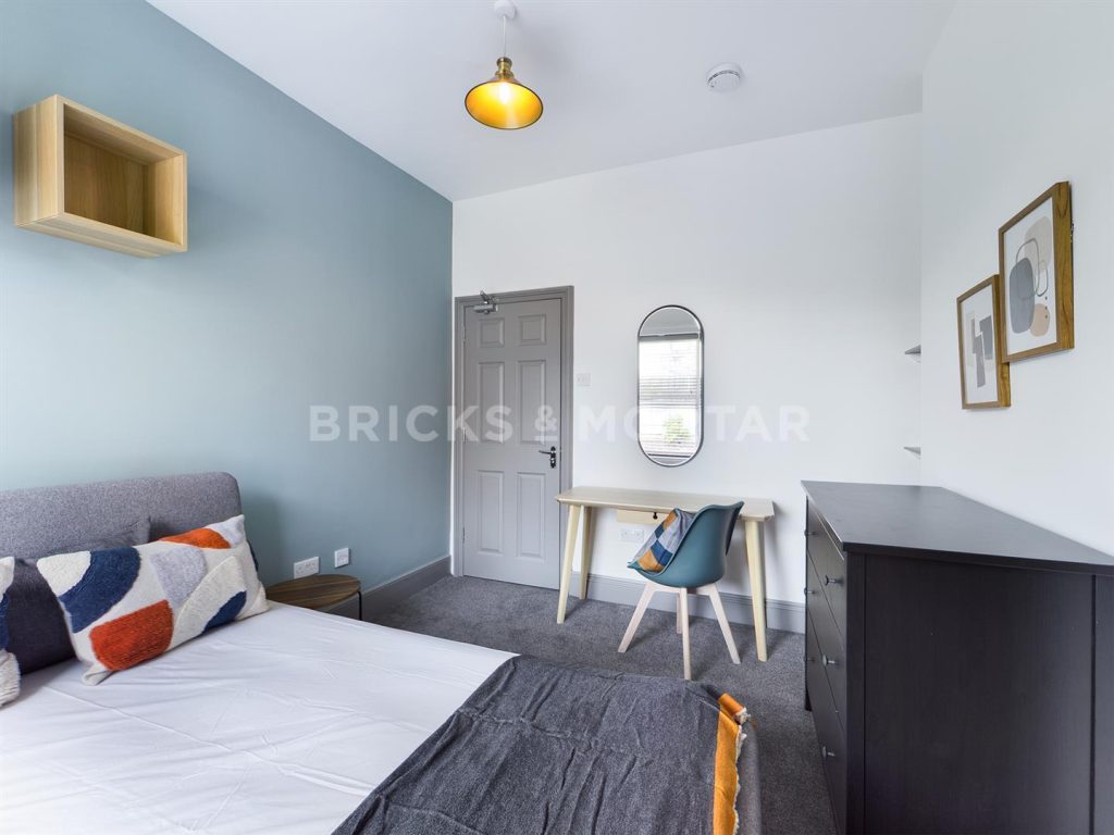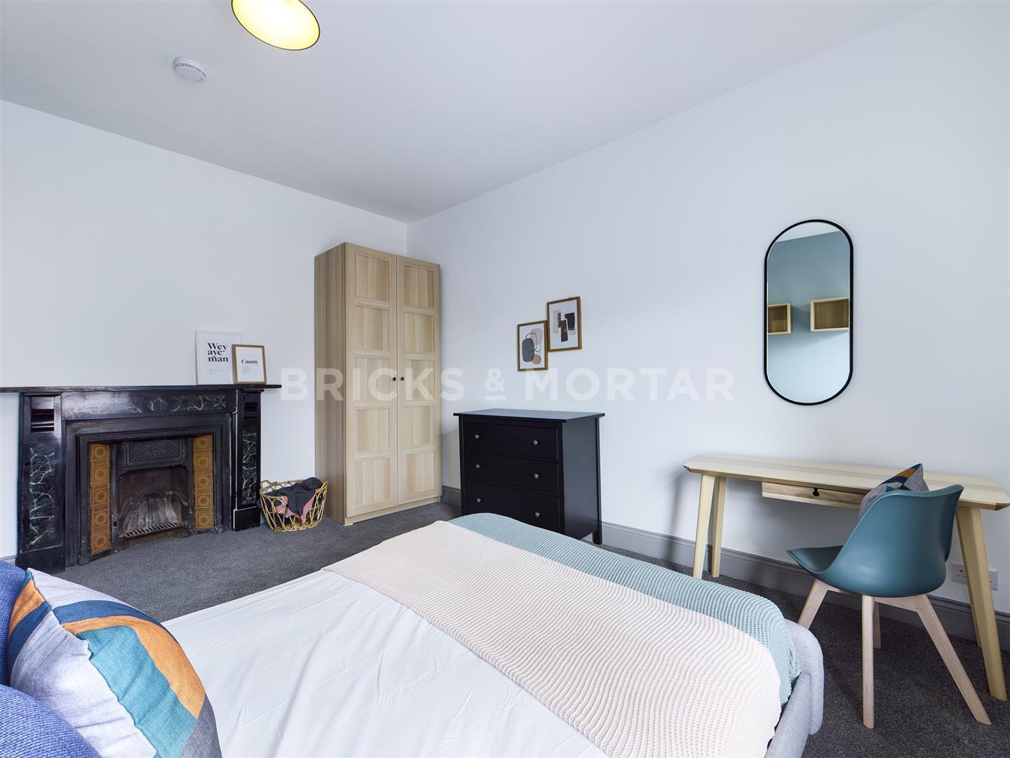 All bedrooms are doubles with neutral, plush grey carpet flooring and an original fireplace to the largest bedroom. Bedrooms are equipped with matching Scandinavian style furniture i.e wardrobe, desk and side tables.