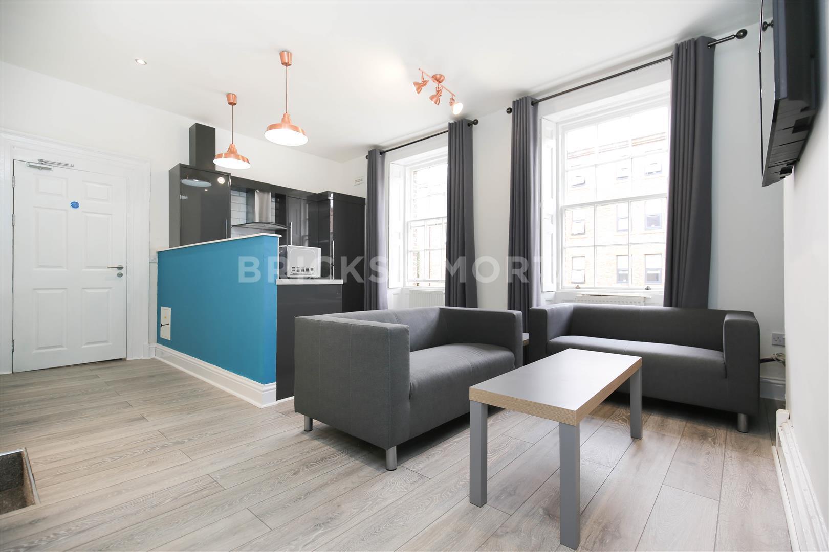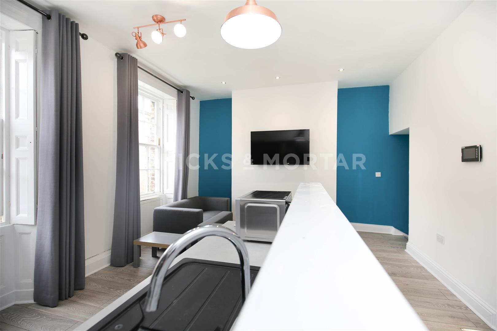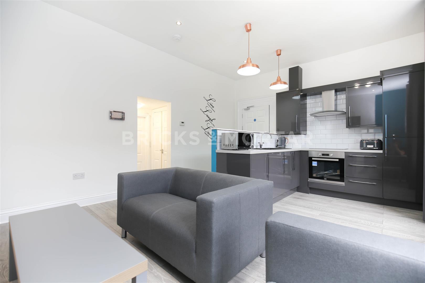 There is an open plan kitchen and living space with anthracite kitchen units and integrated appliances, wall mounted TV and two sofas. The decor is modern throughout, tvs to the bedrooms along with three bathrooms.