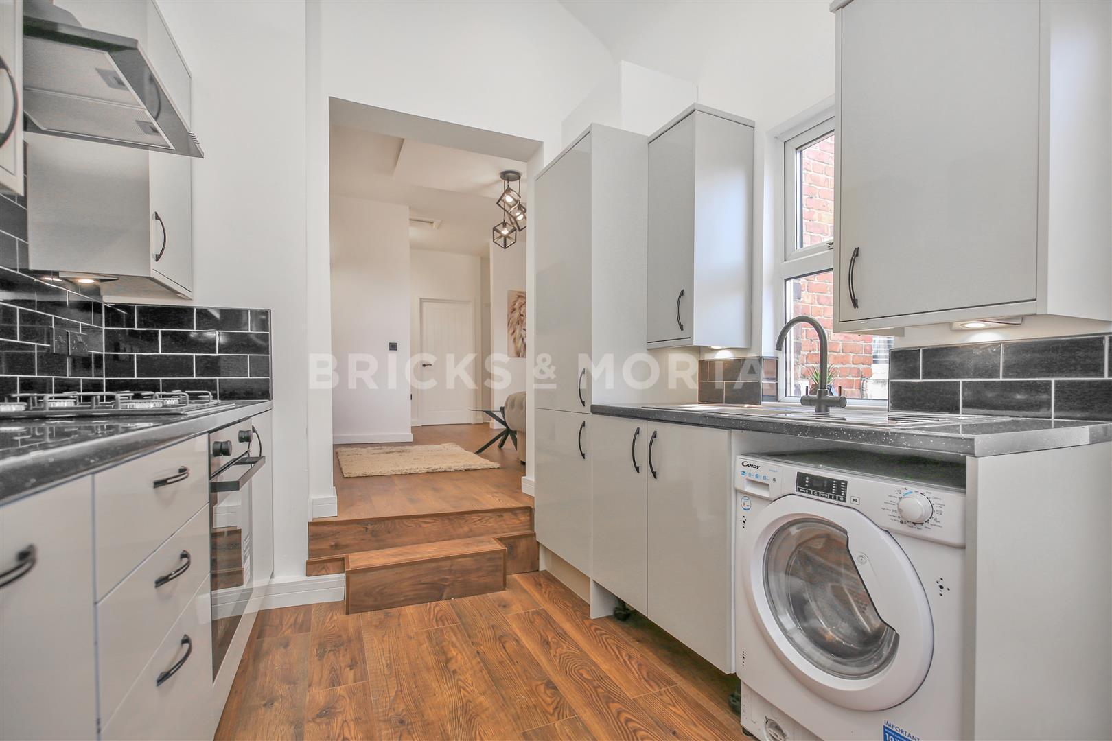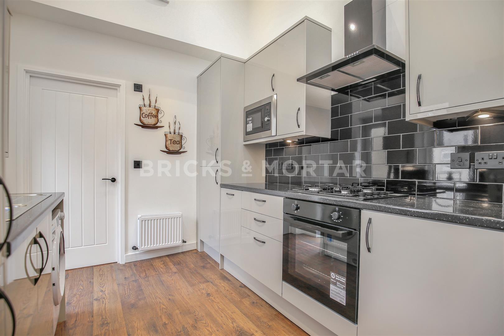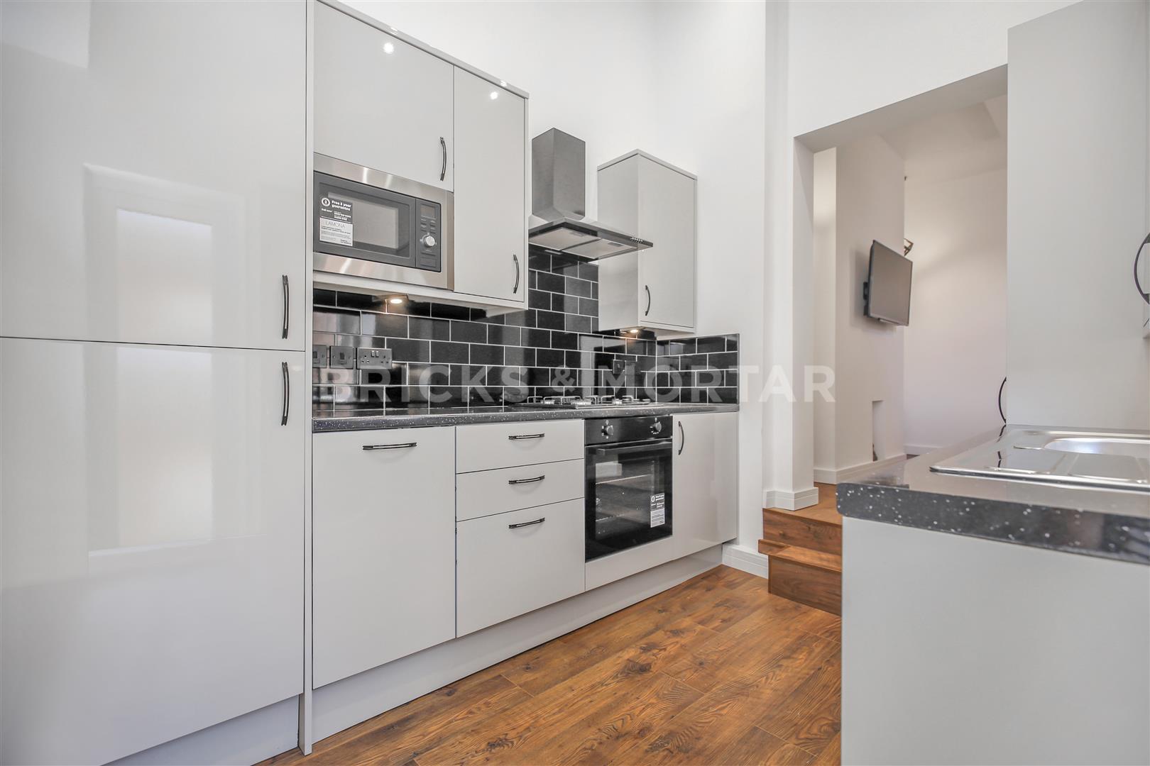 The property is high-end with stunning gloss kitchen units, black modern fixtures and fittings, beautiful well-designed bathroom and a unique ceiling feature.