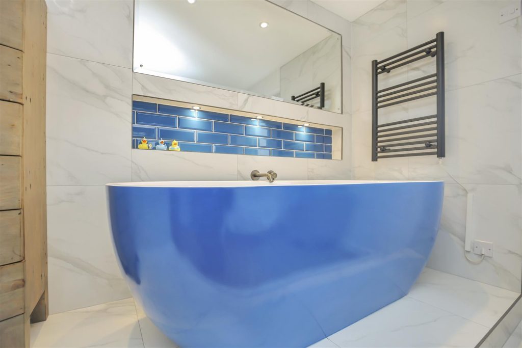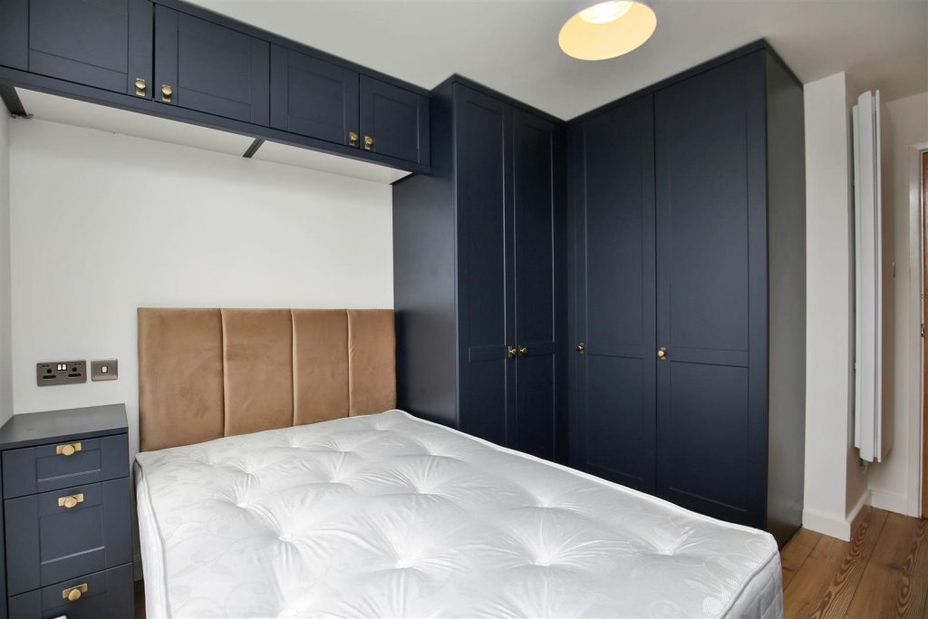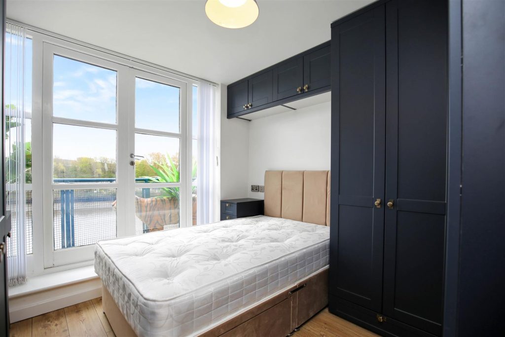 The kitchen is bright and spacious, integrated appliances include, fridge/freezer, dishwasher, washing machine, electric hob and built in over. Tiled splashbacks and under-cabinet lighting enhance the aesthetic, with double glazed window overlooking the river.