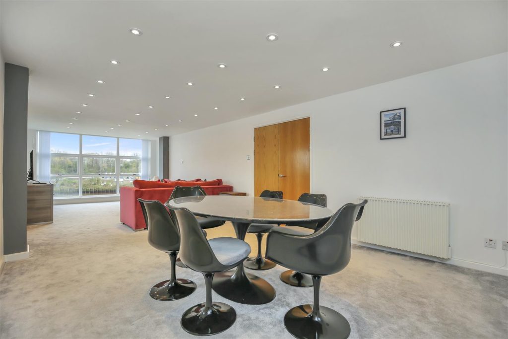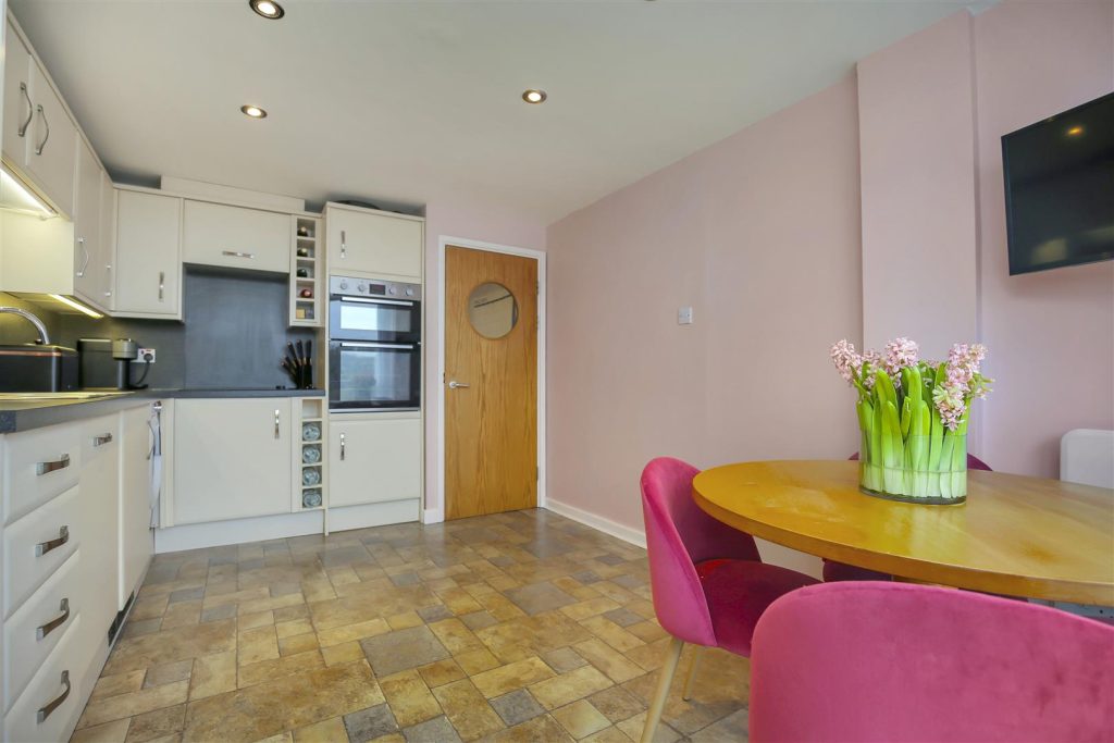 The accommodation comprises of entrance lobby secured via telephone intercom system, with stairs to all levels. Welcoming you with a wall heater, storage cupboard, newly fitted cloakroom, and stairs to the first-floor landing. The lounge/diner offers scenic views from the front, side and rear of the apartment and is complete with a 6 seater dining table and large L shaped sofa.