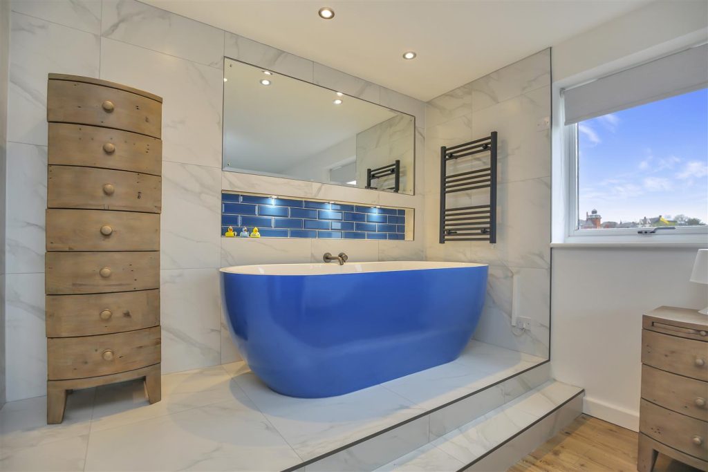 • Large Freestanding Bathtub In Master Bedroom