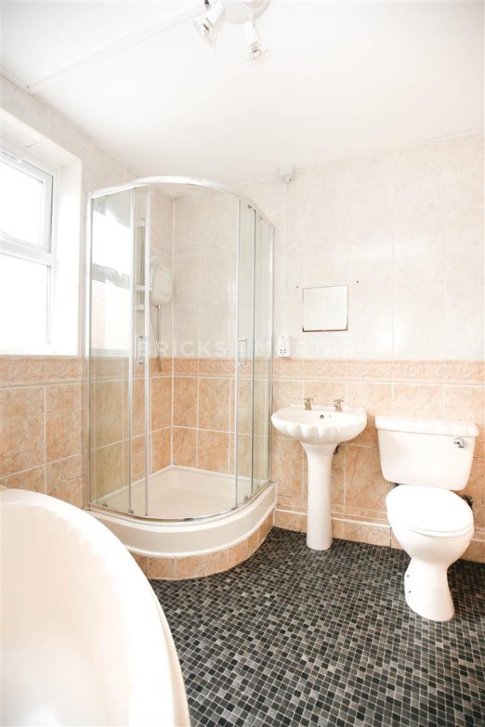 There is a spacious, contemporary lounge, with large bay window and brown sofas. Off the hall is the kitchen. There are two washrooms and there is a lovely garden to the rear of the house.