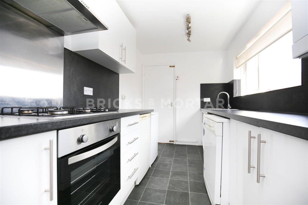 The property boasts a large, open plan lounge, complete with two sofas, carpet and a beautiful original fireplace, leading onto the fully integrated high gloss white kitchen with complimentary black worktops, complete with stainless steel appliances.