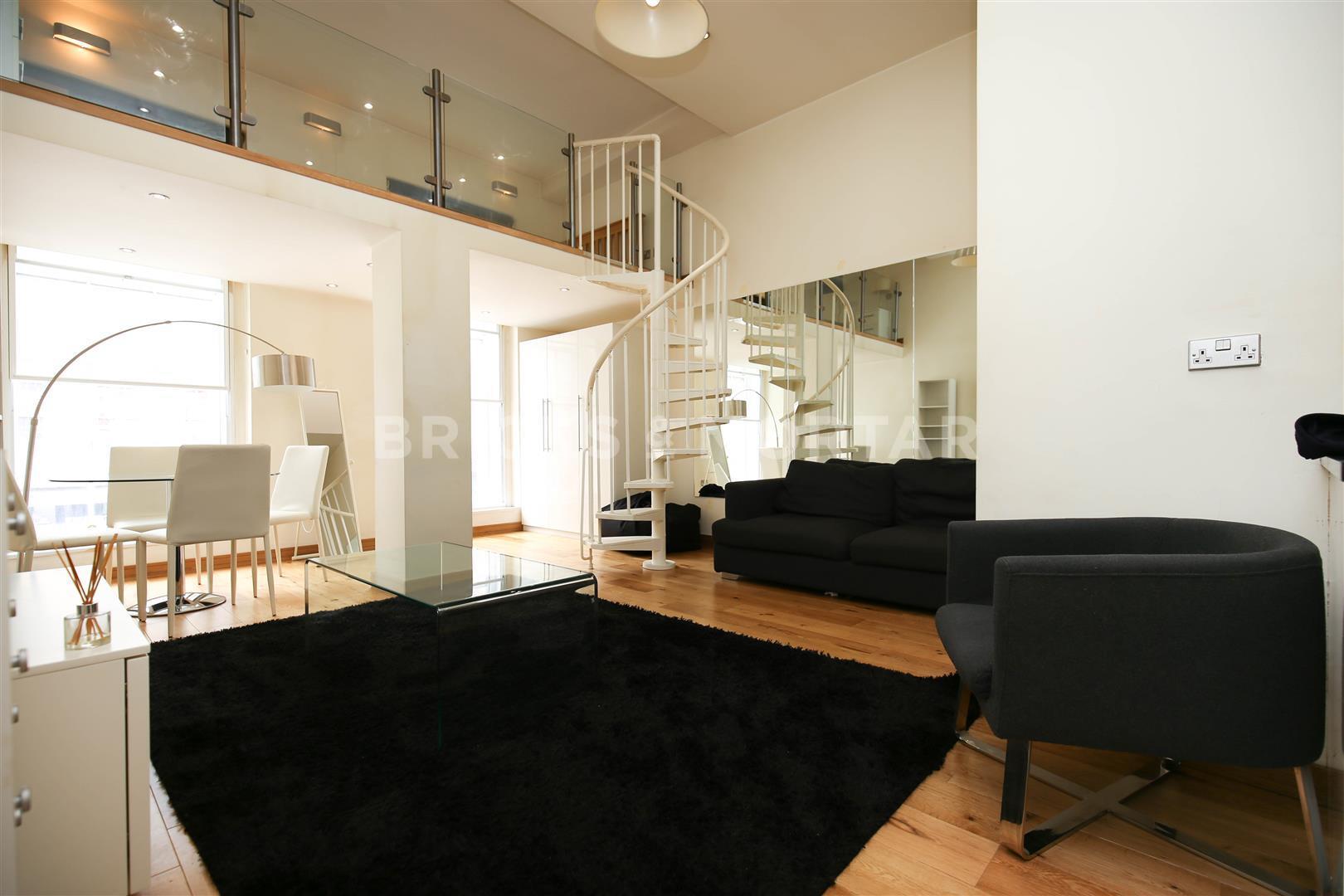 The apartment boasts tasteful furnishings with modern fixtures and fittings throughout. The living area is bright and open plan, there is a wall mounted LCD TV and a quirky spiral staircase leading up to the mezzanine level bedroom. There is a fully equipped integrated kitchen including a dishwasher. Both bedrooms are of good proportion furnished with a double bed, wall mounted LCD TV and ample storage. The modern walk in wet room is on the main floor off from the living room. Located on the second floor, there is a separate laundry room available to the block with three independent washing machines and additional three dryers. The building also benefits from pre-installed Sky ready broadband.