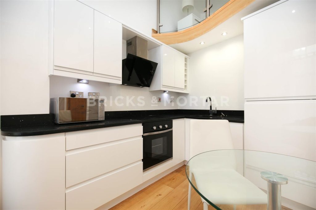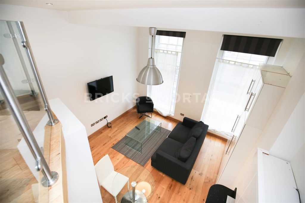 The apartment boasts tasteful furnishings with modern fixtures and fittings throughout. The living area is bright and open plan, there is a wall mounted LCD TV and a quirky staircase leading up to the mezzanine level bedroom. There is a fully equipped integrated kitchen including a dishwasher. The bedroom is of good proportion furnished with a double bed and ample storage. The modern walk in wet room is on the main floor off from the living room.