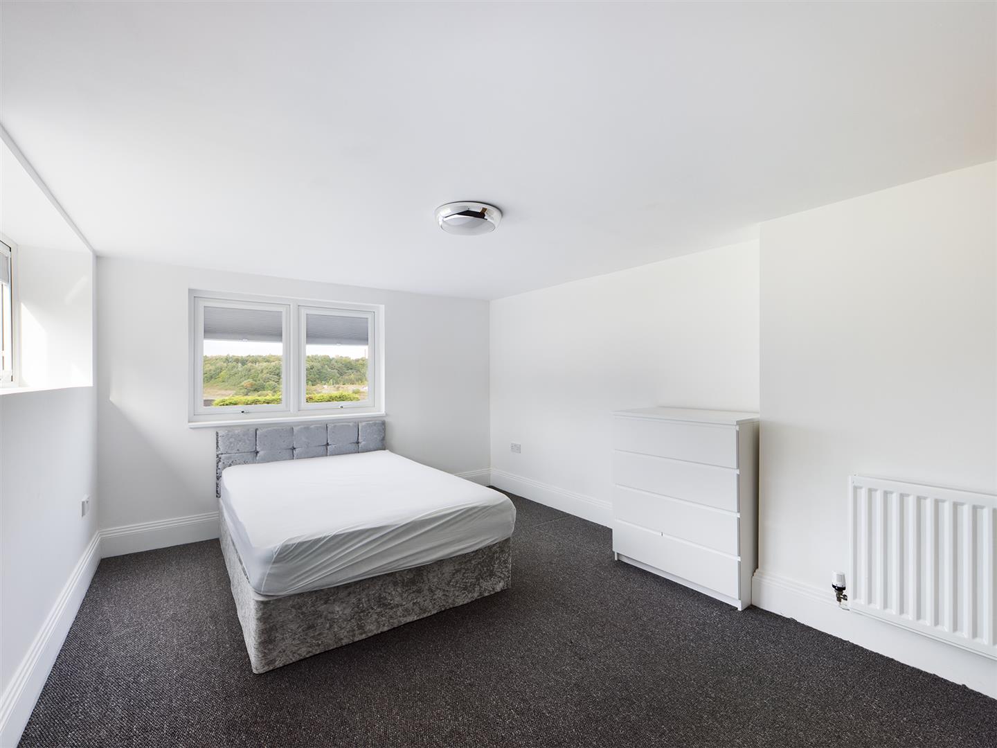 This property is modern living at it's finest with an impressive open plan living space. The kitchen is two tone white and anthracite gloss with a breakfast bar, seating area and separate zone which would make for a great dining area. Patio doors also grant access to a rear communal lawned garden.