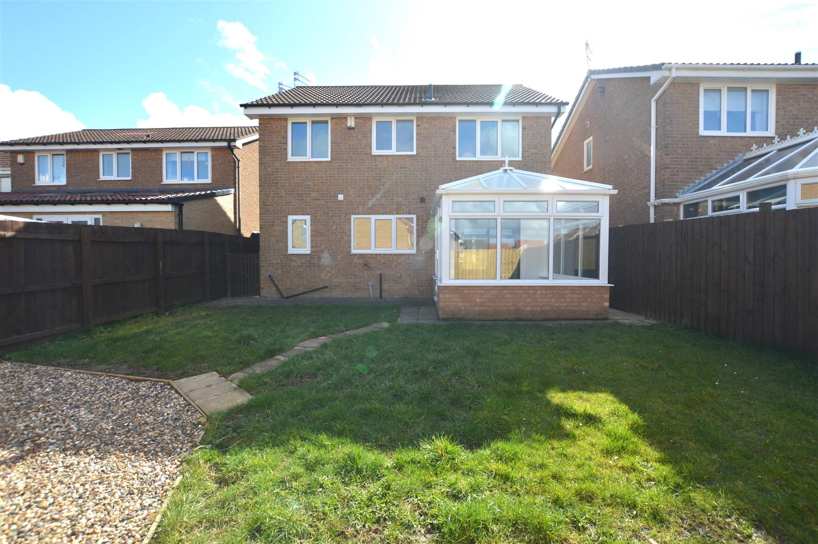 The property includes an integral garage, driveway and part patio, part lawn garden to the rear.