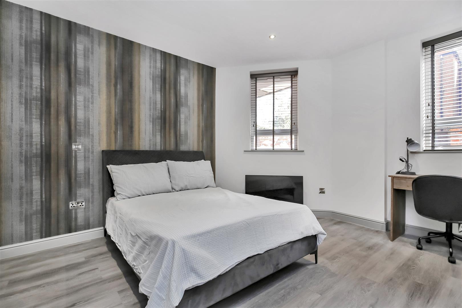 There is a master bedroom with plush bed, study area and double wardrobe. The second bedroom accommodated a single bed and wardrobe.